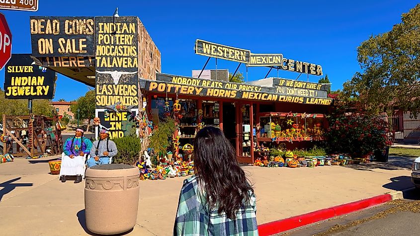 Uma loja de souvenirs indígenas no centro de Boulder City, Nevada. Crédito da imagem 4kclips via Shutterstock