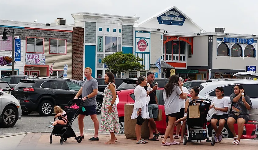 Visitantes aproveitando o dia quente de verão nas ruas de Bethany Beach, Delaware. Crédito da imagem Khairil Azhar Junos via Shutterstock