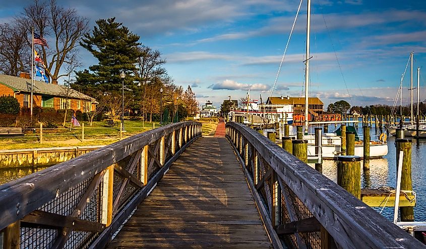 Ponte pedonal no porto de Saint Michaels, Maryland.