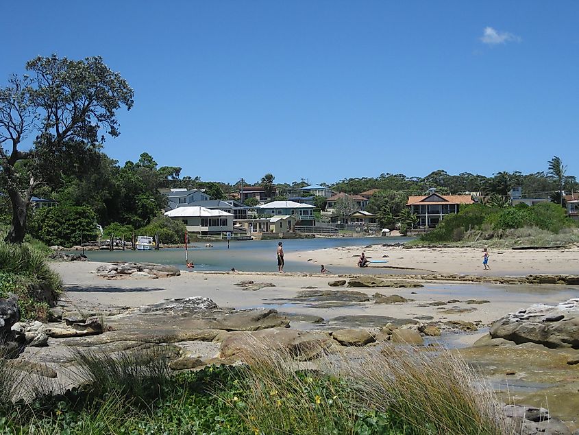Currarong Inlet em Nova Gales do Sul, Austrália, por Phil Whitehouse de Londres, Reino Unido – Currarong InletCarregado por traveler100, CC BY 2.0, Wikimedia Commons