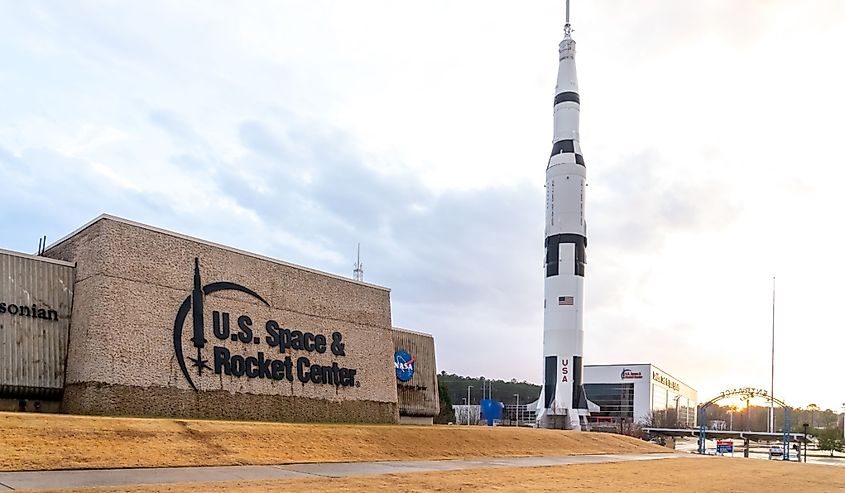 O Centro Espacial e de Foguetes dos EUA em Huntsville, Alabama. Crédito editorial: JHVEPhoto/Shutterstock.com