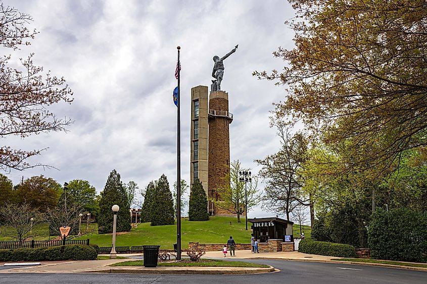 Situada no topo da Montanha Vermelha, a estátua de Vulcano vigia Birmingham como um guardião de metal de 16 metros de altura. Como a maior estátua de ferro fundido do mundo, esta figura imponente fez mais do que apenas virar o traseiro nu para a parte sul da cidade desde 1939. Criada para a Feira Mundial de St. Louis de 1904, esta enorme escultura do deus romano do fogo e da forja presta homenagem ao status único de Birmingham como um dos únicos lugares no mundo onde todas as três matérias-primas para fazer ferro estão a quilômetros uma da outra.