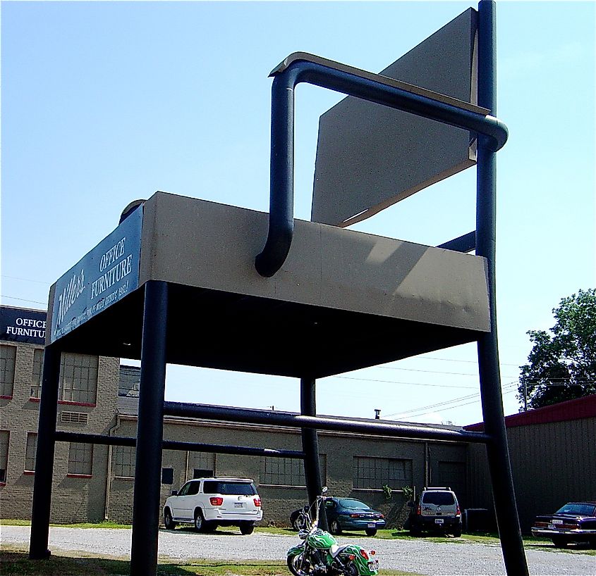A maior cadeira de escritório do mundo em Anniston, Alabama. Por Qqqqqq na Wikipedia em inglês, CC BY-SA 3.0,Wikimedia Commons.
