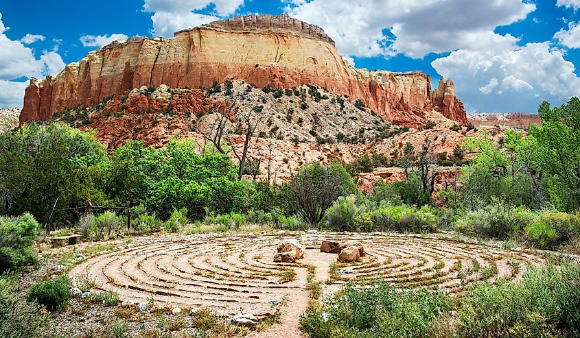 Ghost Ranch abrange 21.000 acres de deserto acidentado, conhecido por seus penhascos imponentes, formações rochosas multicoloridas e longa história de habitação humana. A paisagem tornou-se amplamente reconhecida através das pinturas de Georgia O’Keeffe, que viveu e trabalhou na área durante décadas. Antes disso, era um esconderijo de ladrões de gado no século 19, ganhando seu nome misterioso devido às lendas de espíritos malignos locais.