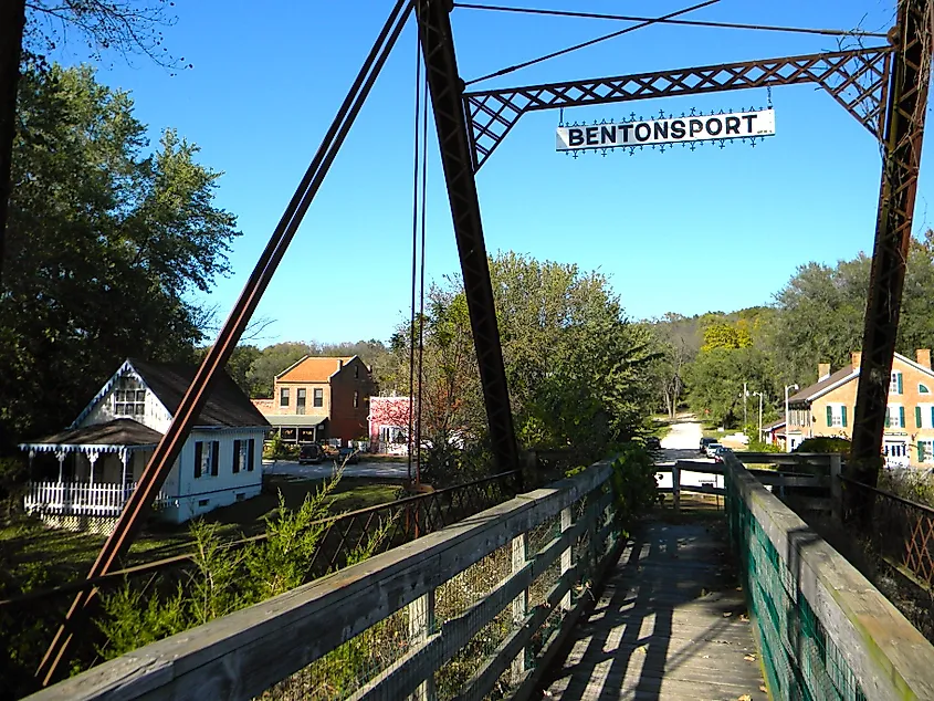A bela cidade de Bentonsport, Iowa. (Crédito da imagem Jon Roanhaus via Wikimedia Commons.)