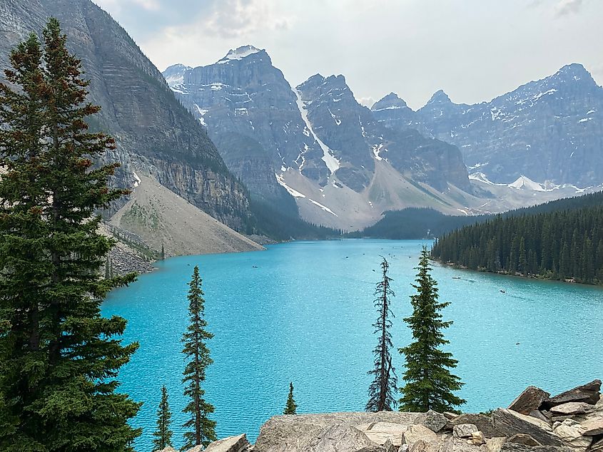 Lago Morraine, na mesma rua (via ônibus) de Lake Louise. Crédito: Andrew Douglas