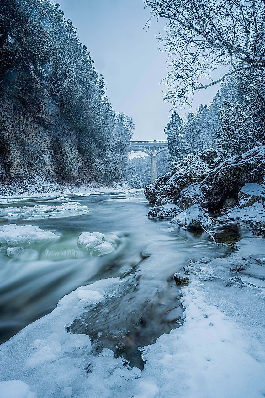 O Elora Gorge no inverno.