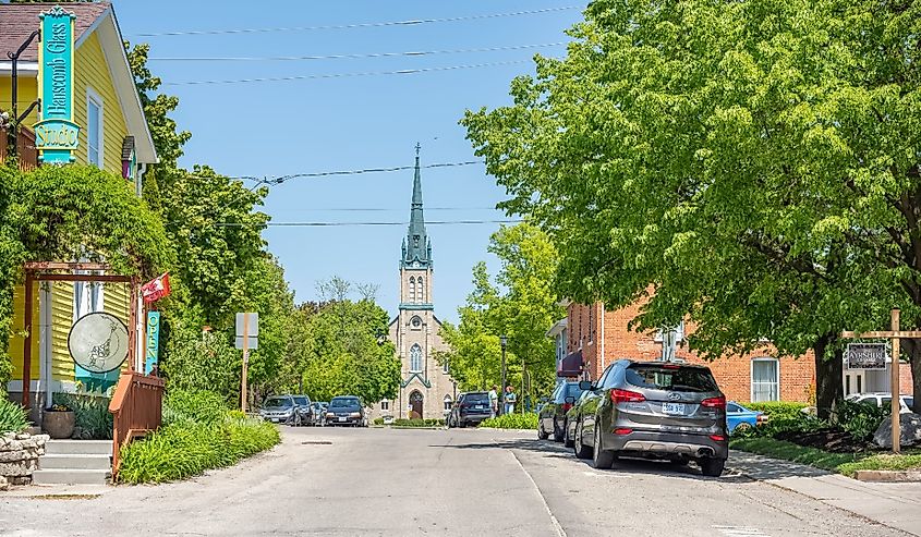 O exterior de uma igreja em Elora, Ontário. Crédito da imagem Eli Unger via Shutterstock