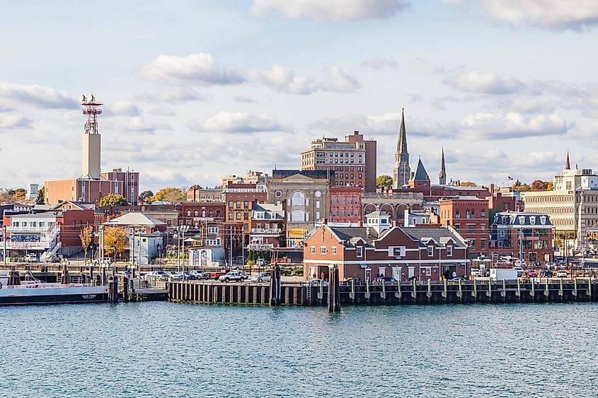 O horizonte do porto de Norwich, Norwich, Connecticut.