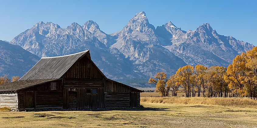 Thomas A. Moulton Barn perto de Mormon Row na Antelope Flats Road em Moose, Wyoming. Crédito da imagem Sherry Talbot via Shutterstock