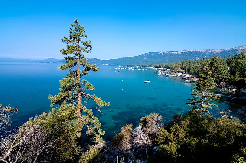 Um dia claro de verão em Lake Tahoe, perto de Incline Village, Nevada.