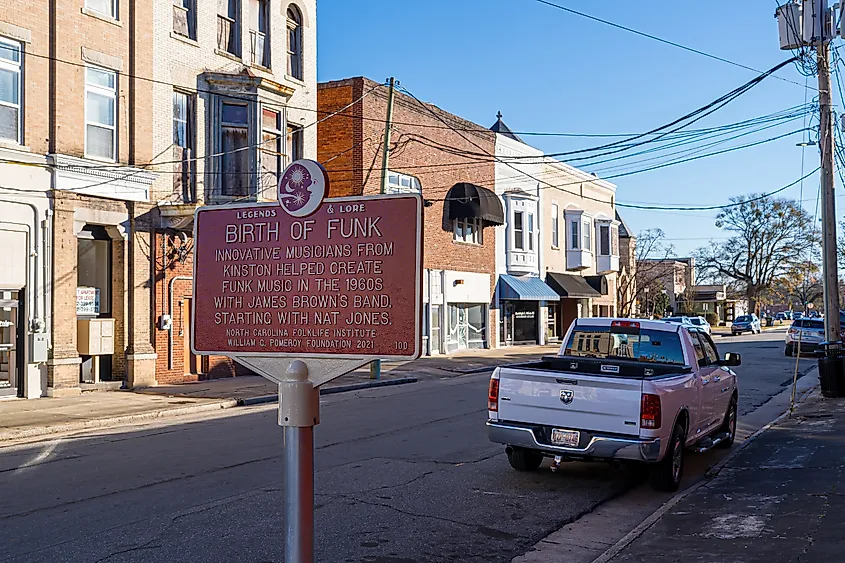 Centro da cidade em Kinston, Carolina do Norte. Crédito da imagem Wileydoc via Shutterstock