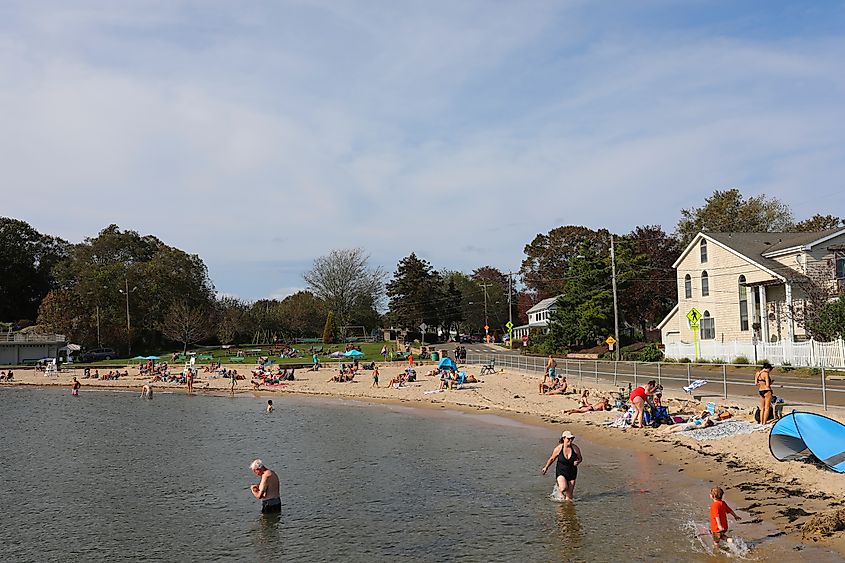 Pessoas curtindo a praia em Branford, Connecticut. Crédito editorial: Akkulina/Shutterstock.com