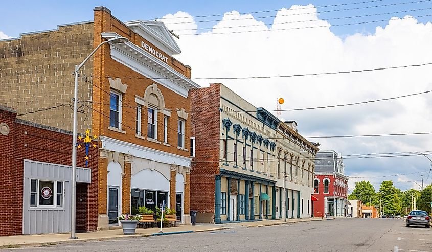O distrito comercial fica na Ohio Street, Rockville, Indiana. Crédito da imagem Roberto Galan via Shutterstock