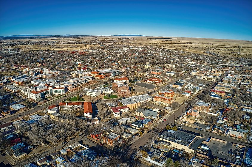 Uma fotografia de Las Vegas, Novo México, tirada do céu.