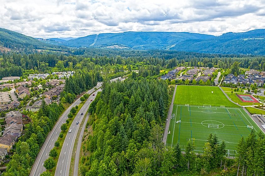 Vista aérea de Snoqualmie, Washington.