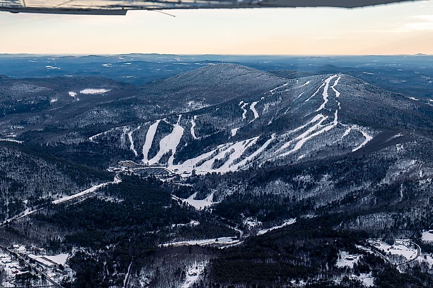 Vista aérea do Gunstock Mountain Resort em New Hampshire.