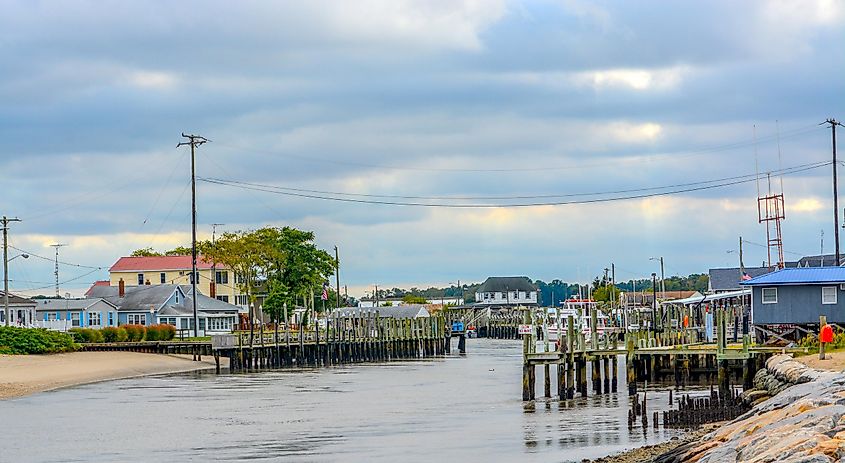 Bowers Beach se apega à Baía de Delaware com uma confiança tranquila, onde os rios St. Jones e Murderkill passam por sua pequena orla marítima. Caiaques e pescadores partem da Bowers Bayside Bait e Kayak Rentals, procurando linguado, anchova e corvina em meio aos reflexos ondulantes do céu. O cais de Bowers Beach atrai pescadores de surf, enquanto a praia pública oferece um local calmo para mergulhar na beira da água.