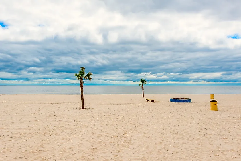 Palmeiras na praia em Pass Christian, Mississippi