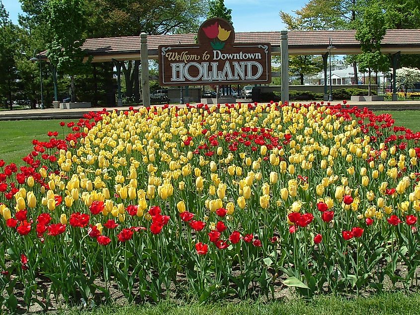 A cidade da Holanda, cujo nome deriva do antigo nome holandês de Holanda, é um espelho adorável do país europeu do povo holandês, completo com moinhos de vento, tulipas e charme do Velho Mundo nas margens do Lago Macatawa e do Lago Michigan. O imponente moinho de vento De Zwaan em Windmill Island Gardens é um pedaço vivo da história holandesa e o único moinho de vento autêntico desse tipo em operação nos EUA. Os visitantes podem apreciar a herança local no Holland Museum e no Cappon House Museum, que traçam a jornada dos imigrantes holandeses da Europa até a América.