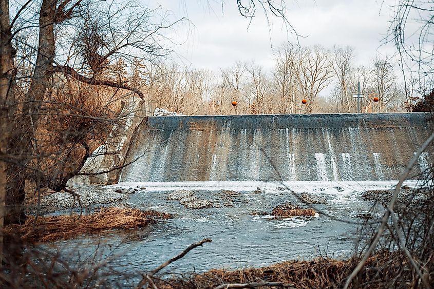 Cachoeira em Marshall Riverwalk, Marshall, Michigan.