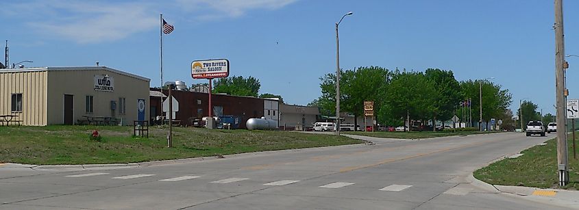 Uma rua tranquila em Niobrara, Nebraska, Por Ammodramus – Trabalho próprio, CC0, Wikimedia Commons.