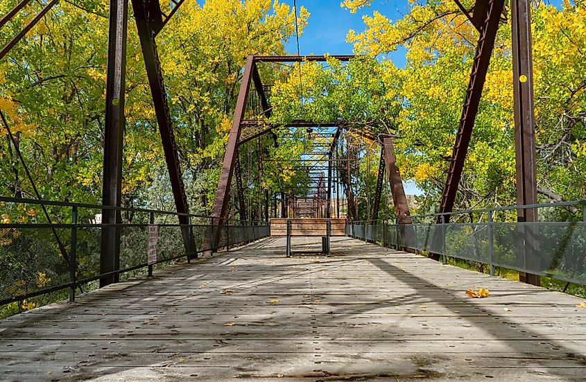 Ponte velha com cores de outono em Fort Benton, Montana.