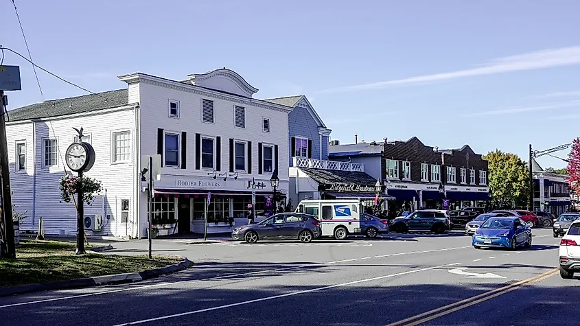 A Main Street de Westport oferece uma mistura sofisticada de lojas de luxo e charme local ao longo do rio Saugatuck. As lojas emblemáticas dividem espaço com boutiques independentes, dando à rua um cenário comercial vibrante. Jesup Green oferece um local pitoresco para relaxar à beira-mar, enquanto o Museu de História e Cultura de Westport conta a história da evolução da cidade. O vizinho Levitt Pavilion acrescenta um toque cultural, hospedando concertos gratuitos ao ar livre durante os meses de verão. A rua principal arborizada de Westport é especialmente convidativa no outono, com a folhagem de outono refletida no rio. Seu equilíbrio entre luxo moderno, elementos históricos e beleza ribeirinha torna-o uma parada inesquecível para quem procura uma experiência perfeita em Connecticut.