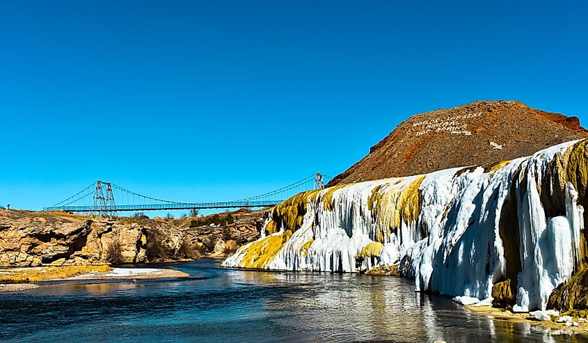 Thermopolis também possui um dos mascotes de beira de estrada mais incomuns do Wyoming – “Tepee Fountain”, uma estrutura em forma de cone criada em 1909 a partir de depósitos minerais formados pelo escoamento de fontes termais. À medida que o vapor das fontes termais é liberado, o vapor d'água esfria e os depósitos de travertino se acumulam uns sobre os outros. A estrutura lembra uma vela derretida, medindo o tamanho de uma casinha, e é uma das atrações mais peculiares do mundo.