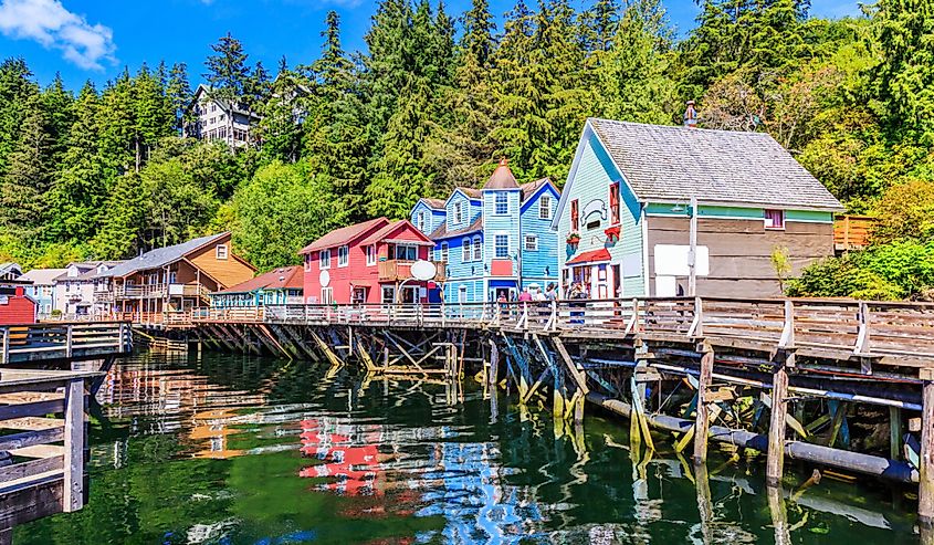O charmoso centro da cidade de Ketchikan, no Alasca. Crédito da imagem Charles HHuang via Shutterstock