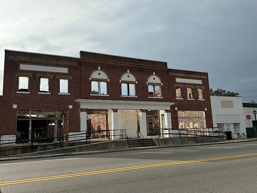 Antigo edifício de tijolos no centro do condado de Genebra, Alabama.
