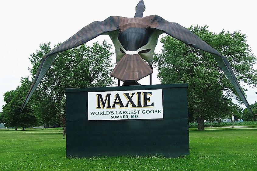 Uma das atrações estranhas mais magníficas e massivas do Missouri é uma grande estátua de fibra de vidro de um ganso canadense. Erguendo-se em Summer, Missouri, esta impressionante estátua é a maior estátua de ganso do mundo. Feita de fibra de vidro, a estátua tem 12 metros de altura e pesa 4.000 quilos. A envergadura do ganso tem 62 pés de largura, tornando-o um dos maiores marcos do Missouri. O verão é conhecido como “a capital mundial dos gansos selvagens”, pois está localizado em uma importante rota de aves migratórias. Portanto, é apropriado que a estátua seja uma forma de boas-vindas à cidade. A estátua foi construída em 1974 por um escultor hippie eclético, David Jackson. Jackson construiu o pássaro com malha de metal e fibra de vidro, acrescentando bolas de boliche para os olhos. O nome do pássaro, “Maxie”, foi inspirado no nome latino do gigante ganso canadense, Branta canadensis maxima.