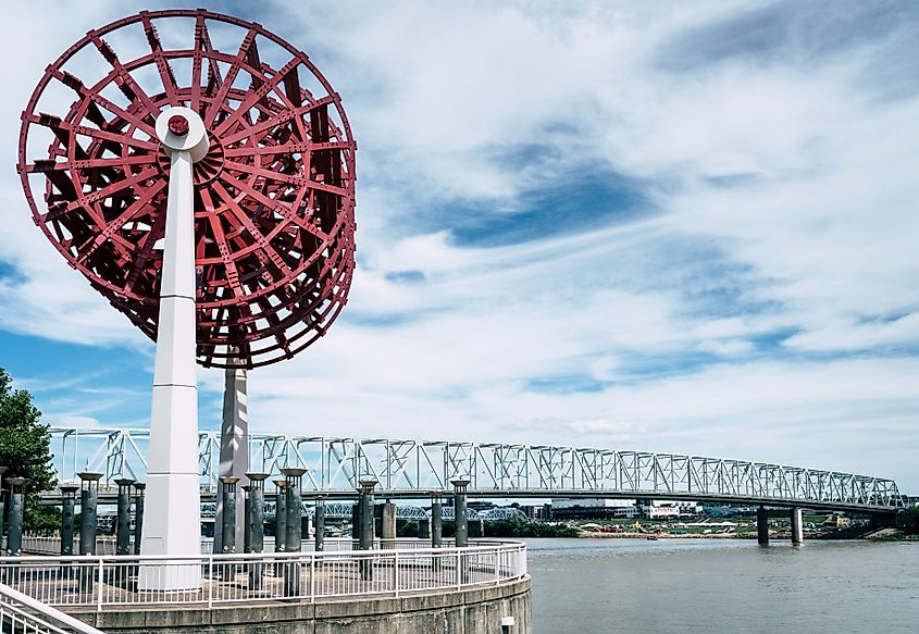 Localizada em Riverwalk, no centro de Cincinnati, é uma réplica de uma roda de pás original do barco fluvial American Queen. Também conhecida como Monumento Nacional do Barco a Vapor ou Whistle Grove, esta roda de 30 pés é composta por uma roda vermelha brilhante e 24 colunas de aço inoxidável. Ele está posicionado a cerca de 12 metros acima do rio Ohio, toca música e emite vapor quando os visitantes passam. A réplica da roda de pás, que pesa 60 toneladas, foi criada pelo artista Christopher Janney e instalada em 2002. Encontre esta réplica funcional incomum ao longo da trilha do rio Ohio, 100 Joe Nuxhall Way, em Cleveland.