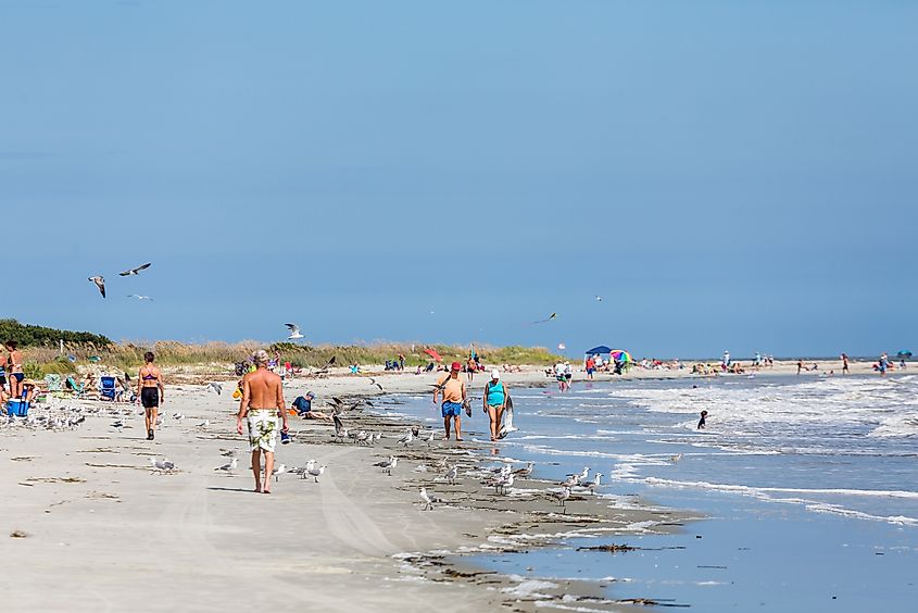 Pessoas ao longo da praia em St. Simons, Geórgia. Crédito editorial: Darryl Brooks/Shutterstock.com