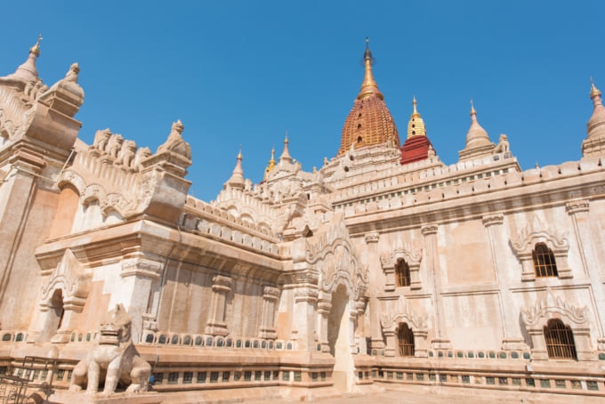O mais famoso dos templos ao redor de Bagan, Ananda é um dos maiores e mais bem preservados, construído no início do século XII pelo rei Kyanzittha. Geralmente o primeiro na lista de templos a visitar pela maioria das pessoas, Ananda foi parcialmente destruído por um terremoto, mas desde então foi maravilhosamente restaurado. Agora é uma das melhores representações destas antigas ruínas.