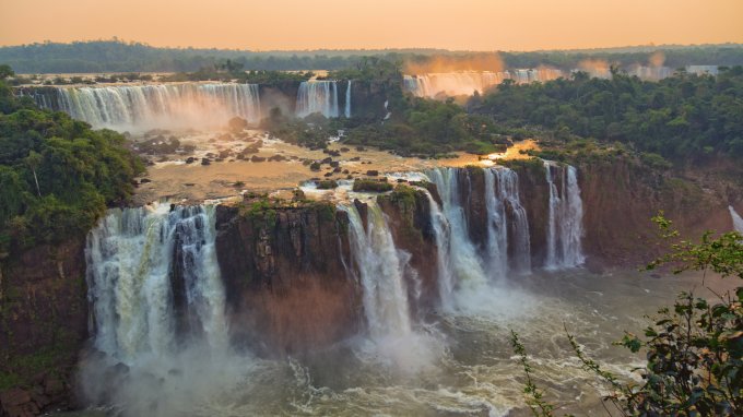 As Cataratas do Iguaçu estão divididas entre a Argentina e o Brasil em um grande parque nacional que oferece as vistas mais inspiradoras, com uma cadeia de centenas de cachoeiras que se estendem por uma extensão de três quilômetros. Você pode facilmente passar um dia inteiro explorando cada área deste belo parque junto com a natureza e a vida selvagem encontradas aqui. Se você quiser ver as cataratas de perto, fazer um passeio de barco é uma ótima opção a considerar.