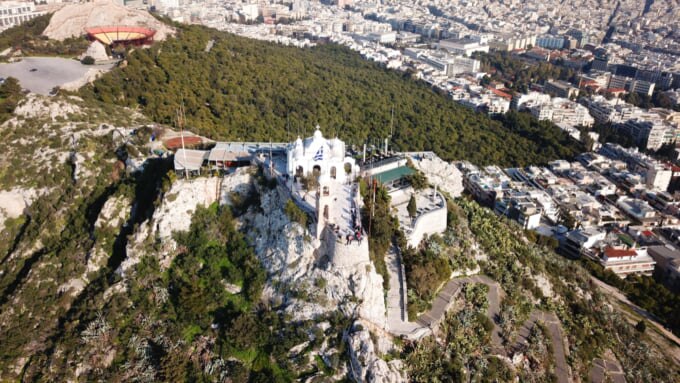 O Monte Lykavittos é uma das atrações turísticas mais famosas de Atenas, com cerca de 300 metros de altura, proporcionando uma bela vista da cidade histórica de Atenas. Você pode usar o trilho suspenso para chegar ao topo do morro, uma experiência agradável que leva apenas alguns minutos, e subir o morro pelas escadas que o circundam. A colina é considerada um dos mais belos locais turísticos da Grécia. Você pode apreciar a beleza da vista que o morro proporciona do topo, principalmente ao pôr do sol, onde as luzes da cidade de Atenas aparecem abaixo do morro.