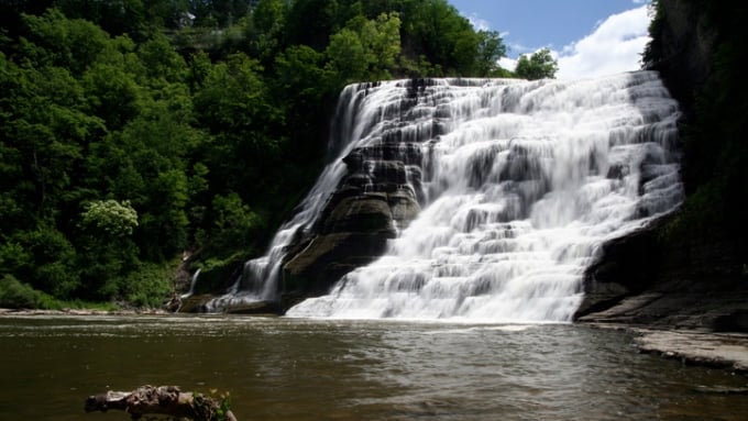Entre os rios que correm por Ithaca, Fall Creek está repleto de atrações pitorescas! Em apenas cerca de 1 km, existem quatro cachoeiras, cada uma com seu charme único. Em particular, Ithaca Falls, a mais baixa das quatro, permite que os visitantes desçam do parque na margem sul para chegar perto da piscina.