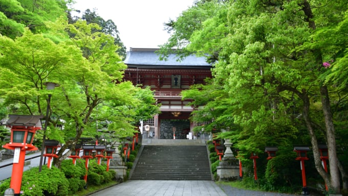 O santuário superior apresenta vários marcos importantes, incluindo o Portão Romon do Tesouro Nacional, o santuário principal construído na arquitetura Hachiman-zukuri, o Muro Nobunaga e uma grande árvore de cânfora doada por Kusunoki Masashige. Na área inferior, você pode visitar o santuário temporário Ton-gu, o Santuário Korasha – mencionado no clássico Tsurezuregusa – e um pinheiro ligado a Minamoto no Yoritomo. O terreno do santuário está repleto de locais históricos e vale a pena explorar a fundo.