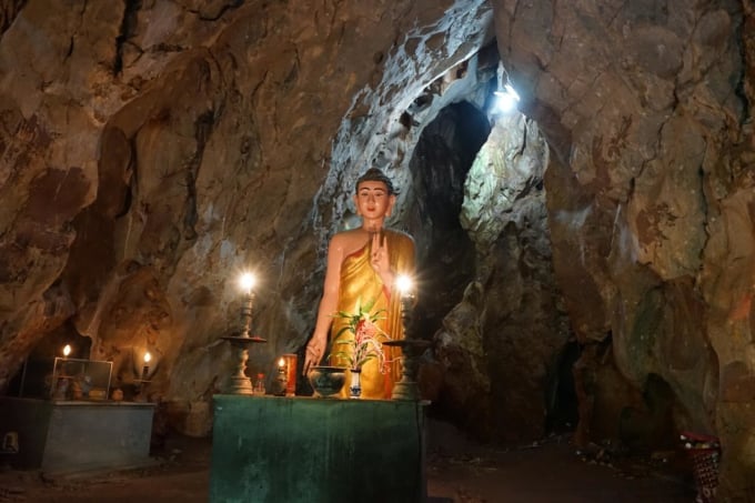 Ao passar por um antigo portão perto do Pagode Tam Thai, você encontrará a caverna Hoa Nghiem, que leva à caverna Huyen Khong. A seção Hoa Nghiem abrigou originalmente um templo do povo Cham do Reino de Champa, e vestígios dessa herança permanecem na forma de altares. Se você olhar de perto, encontrará relevos de divindades hindus esculpidos nesses altares.