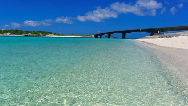 A Praia de Yonasaki, localizada no sopé da Ponte Nofu Ohashi, no lado da Ilha Iheya, é uma praia de areia branca de tirar o fôlego, conhecida por sua beleza incomparável em Okinawa. Muitas vezes considerada uma das praias mais deslumbrantes da região, é um destino de visita obrigatória para os viajantes que exploram a Ilha Iheya. As águas cristalinas criam um gradiente hipnotizante do verde esmeralda ao azul profundo, oferecendo uma vista pitoresca do horizonte. Este local pitoresco é perfeito para casais e famílias que desejam criar memórias inesquecíveis à beira-mar.