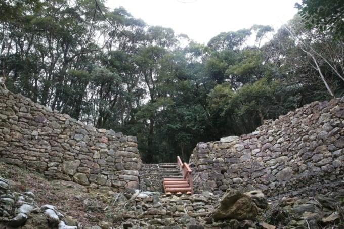 O verdadeiro castelo foi construído em 667 DC pelos antigos militares japoneses após a derrota na Batalha de Hakusukinoe contra as forças combinadas Tang e Silla. Acabou sendo abandonado após cerca de 200 anos.
