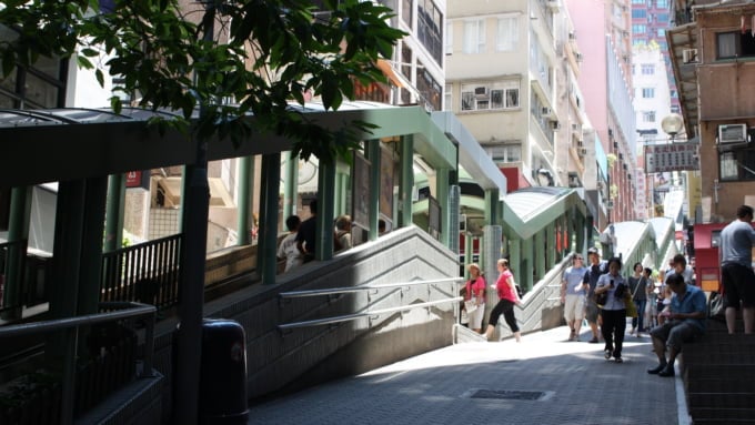 Uma parte essencial do passeio pela Central são as “escadas rolantes da encosta” (também conhecidas como escadas rolantes de nível médio central), localizadas a cerca de 7 a 8 minutos a pé da Estação Central MTR. Com um comprimento total de surpreendentes 800 metros, é considerado o sistema de escadas rolantes cobertas ao ar livre mais longo do mundo. Composta por 23 escadas rolantes em sequência, uma viagem completa leva cerca de 23 minutos.