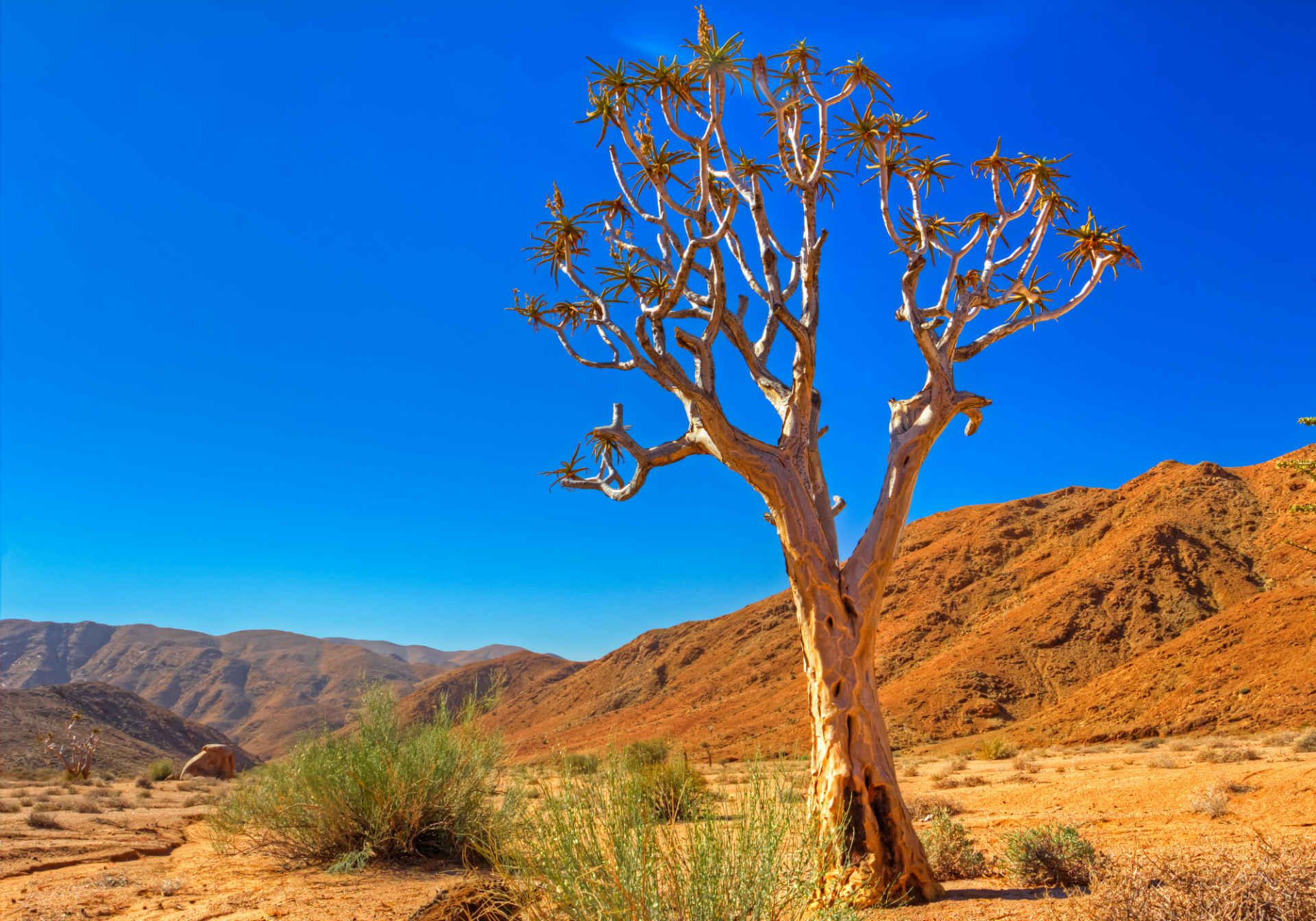 Na verdade, é o lar de 30% das espécies de suculentas da África do Sul, muitas delas exclusivas de Richtersveld. Pontuando a paisagem do deserto estão árvores aljavas, aloés gigantes e halfmensboom (“meio-homens” – assim chamados por causa de sua forma humana).
