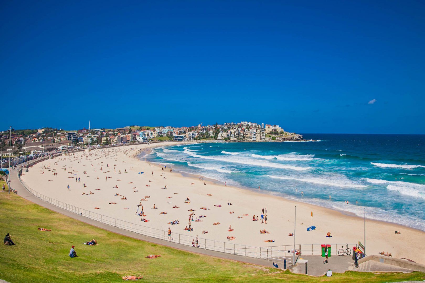 Praia, surf e cultura de cafés: a famosa praia de Sydney tem algo para todos os gostos. Bondi Beach é sinônimo de cultura de praia australiana e, de fato, a curva de areia dourada de 1,5 km de extensão deve ser uma das melhores praias da Austrália. É também a praia oceânica mais próxima do centro da cidade, a 7 km da cidade.