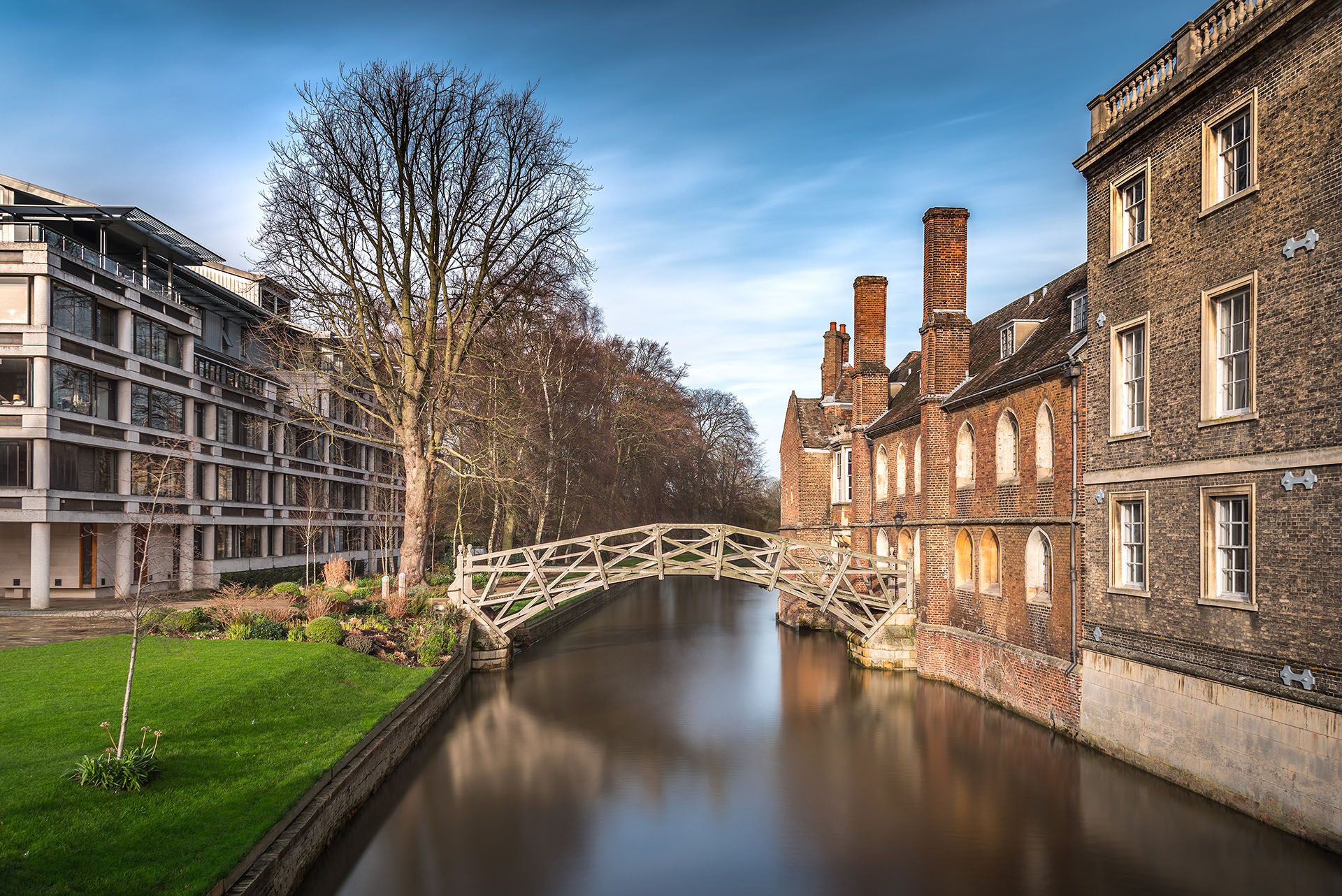 Igualmente atraente é a Ponte Matemática de madeira sobre o Rio Cam. Esta é uma cópia do original de meados do século XVIII, que – assim foi afirmado – permaneceria no lugar mesmo se as porcas e os parafusos fossem removidos.