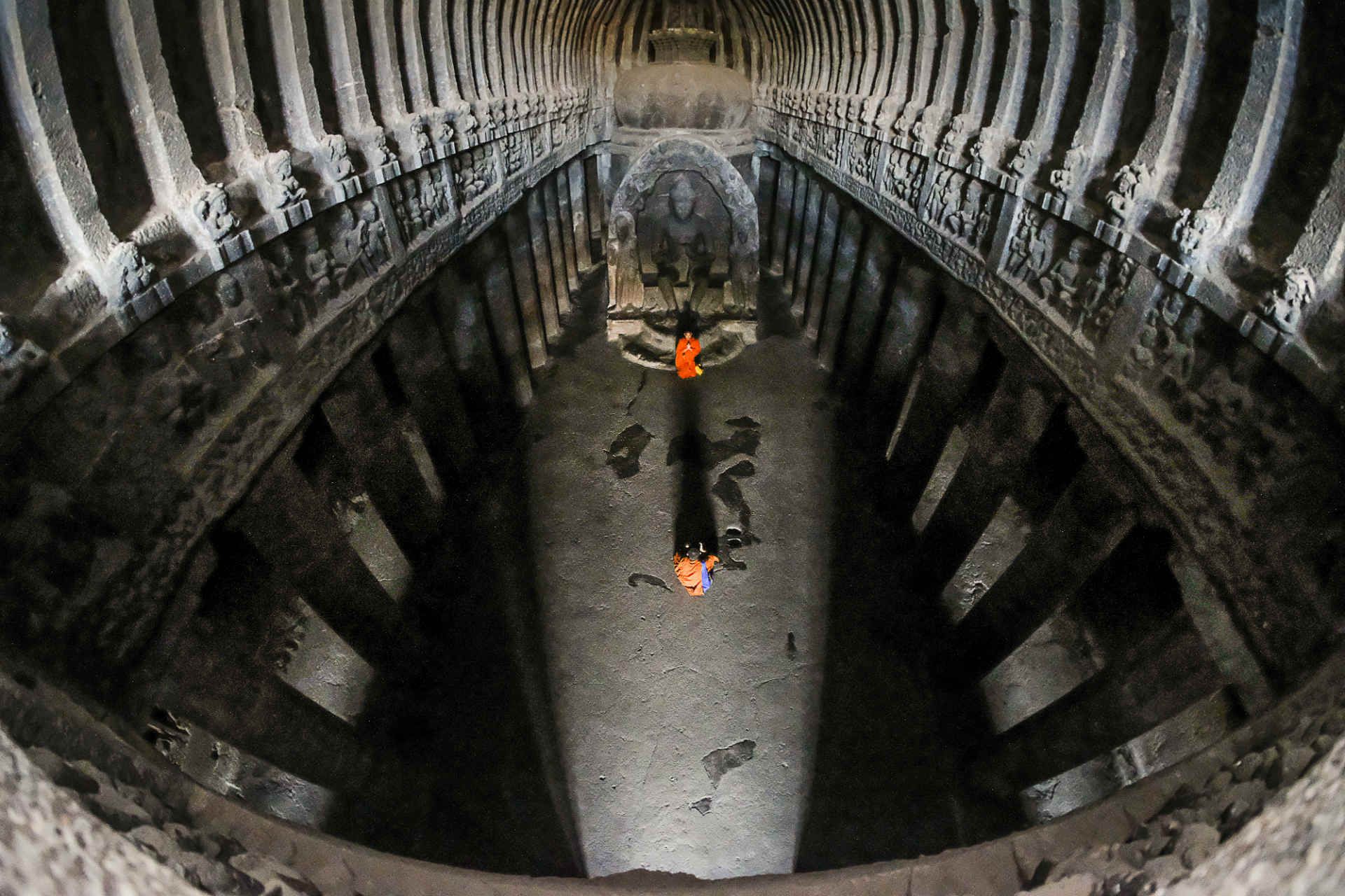 Patrimônio Mundial com cavernas hindus, budistas e jainistas de tirar o fôlego esculpidas em rocha vulcânica sólida, as Cavernas Ellora são imperdíveis se você estiver indo ou vindo de Mumbai.