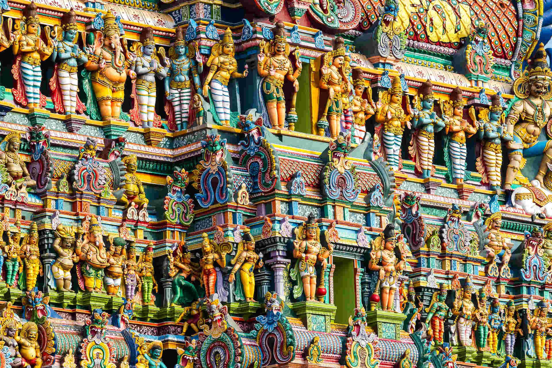 No centro do palco está o espetacular templo medieval de Sri Meenakshi-Sundareshwarar – um labirinto de santuários e colunatas, com cerca de 33.000 esculturas.