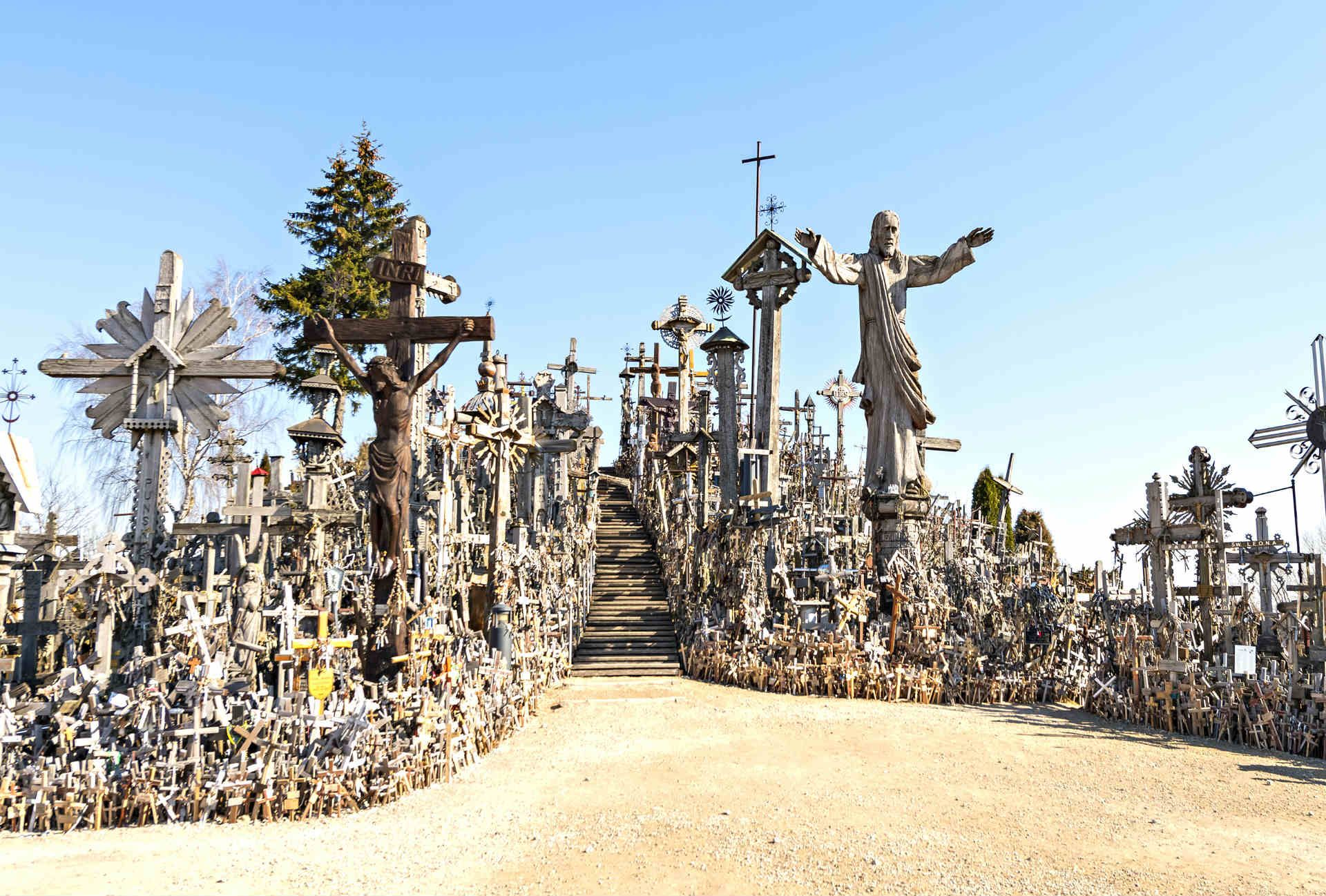 No alto de uma colina, 12 km ao norte da cidade de Šiauliai, 188 km a noroeste de Vilnius e 170 km a leste de Klaipėda, fica a Colina das Cruzes (Kryžių kalnas). Esta é uma coleção cada vez maior e inspiradora de mais de 200.000 cruzes, estátuas e efígies. Existem muitos mitos em torno da origem da Colina, alguns que remontam aos tempos pagãos.