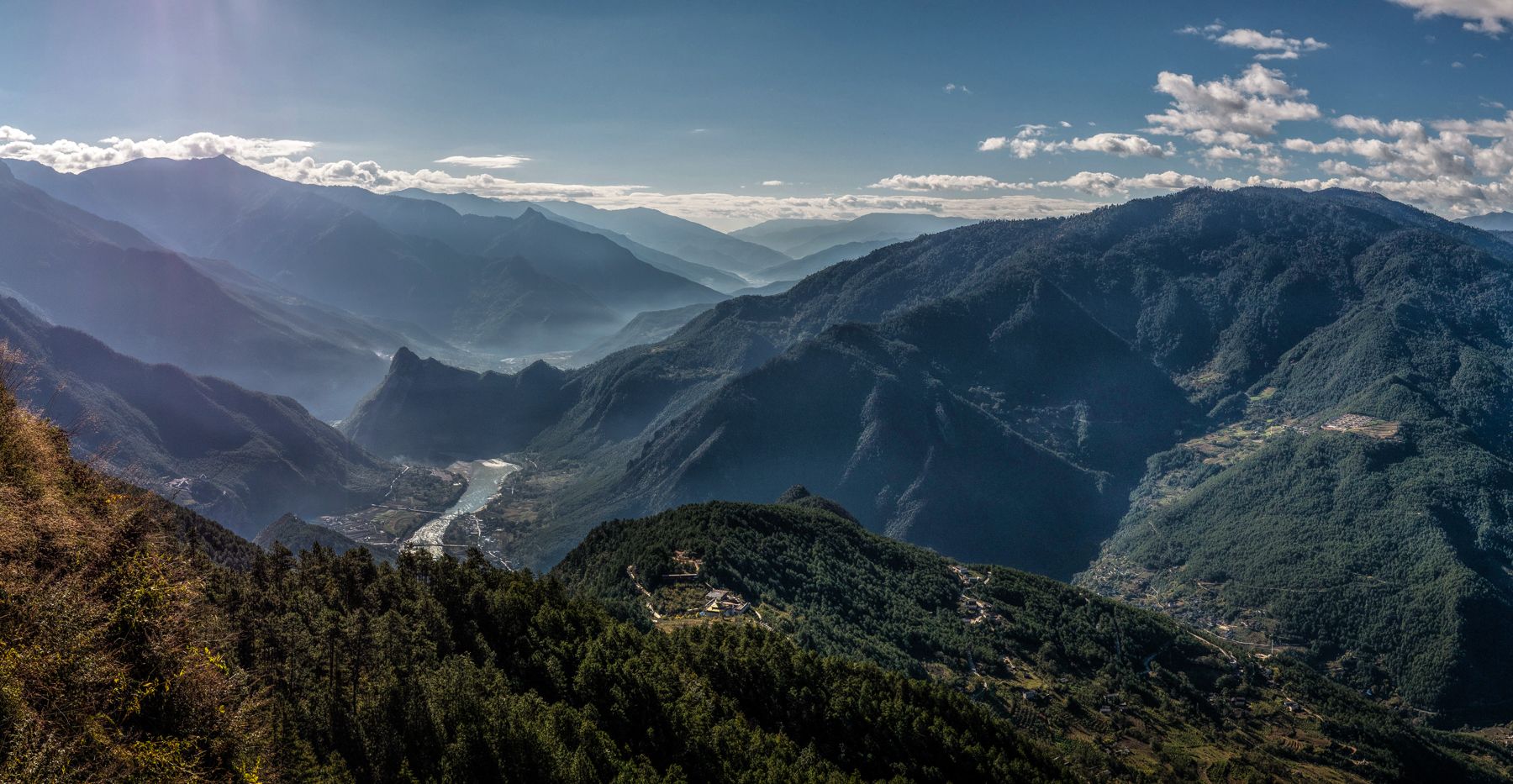 O cume do Kawakarpo eleva-se mais de cinco quilómetros verticais acima do rio Mekong